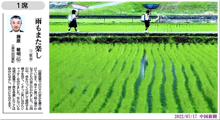 これは、本日の中国新聞朝刊に掲載の『第638回読者の写真<6月の入賞作>1席』の作品なんですけど、う〜ん、何度、見直しましても楽しい写真です\(^o^)/