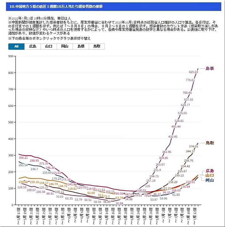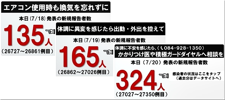 広島県全体でも、7/13は、1,252人と5/26以来48日振りの千人越えとなりましたようです。
