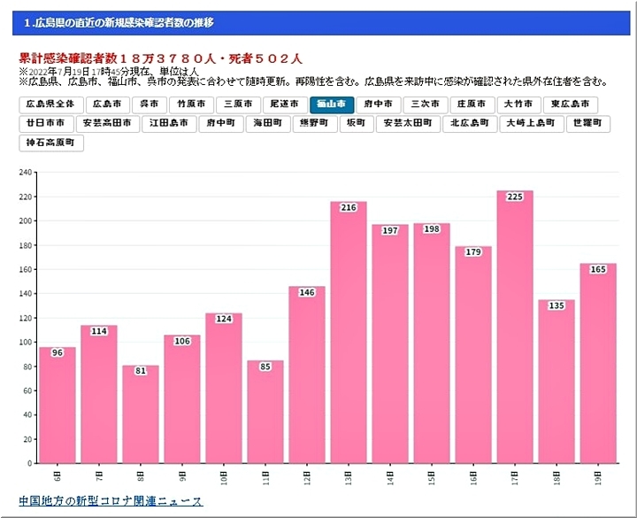 福山市のコロナ感染者…昨日が216人で、本日が197人でしたか…