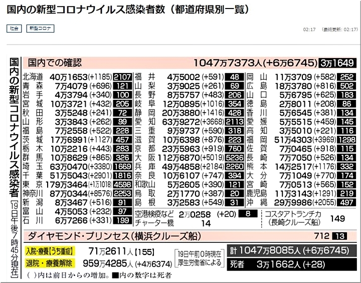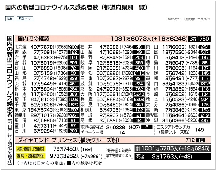 ◆広島県1,252人感染1人死亡 千人超えは48日ぶり、第7波入り鮮明 13日新型コロナ