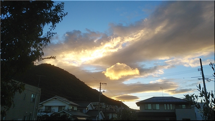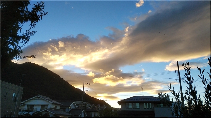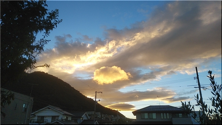 その際に、夕日に映えて金色に輝く、この雲のみが移動しています様子は、何となく不思議な景観でありました(^_^)v