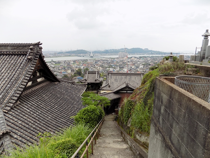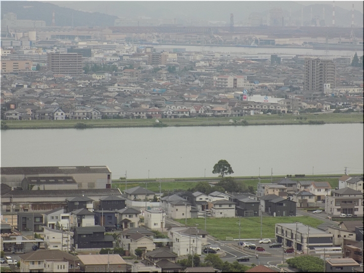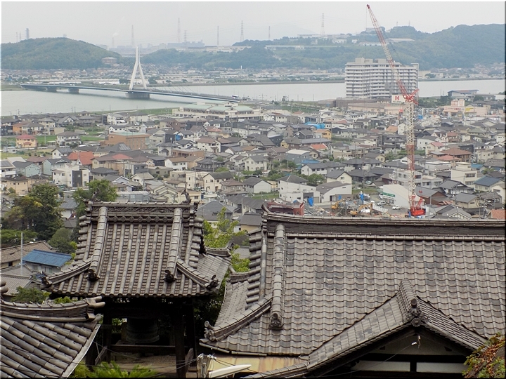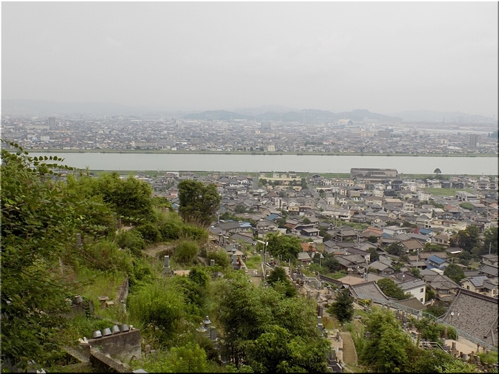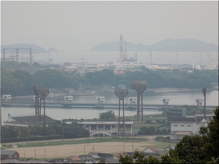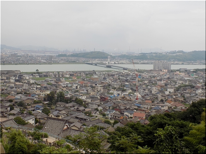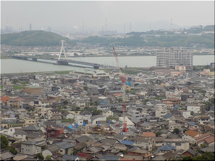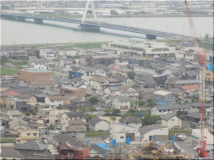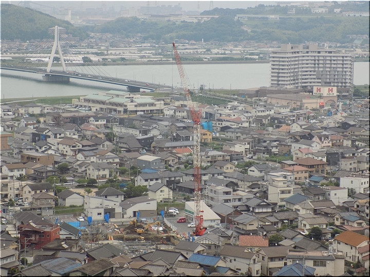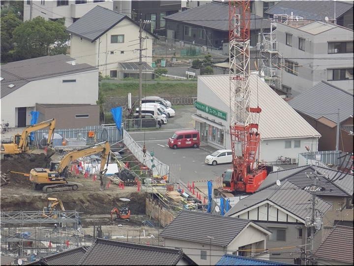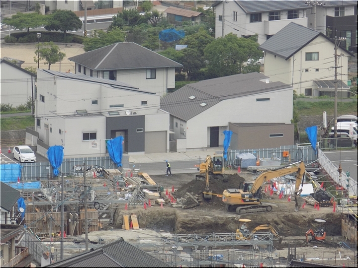 草取りを終えますと、いつものように、眼下の我が町を眺望です。墓地からは、藤井病院sanの建設現場がよく見えます。ふ〜ん、まだ、こんな状態なんですねぇ〜