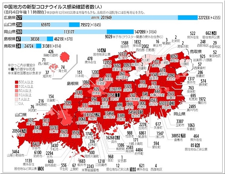 ◆広島県で3973人感染、4人死亡 5日新型コロナ