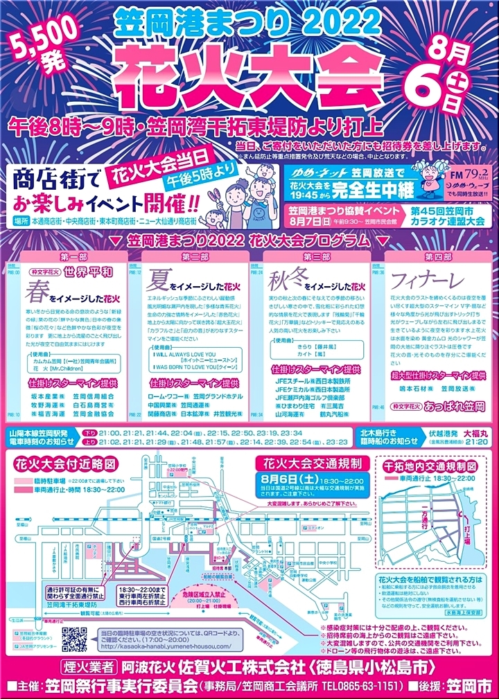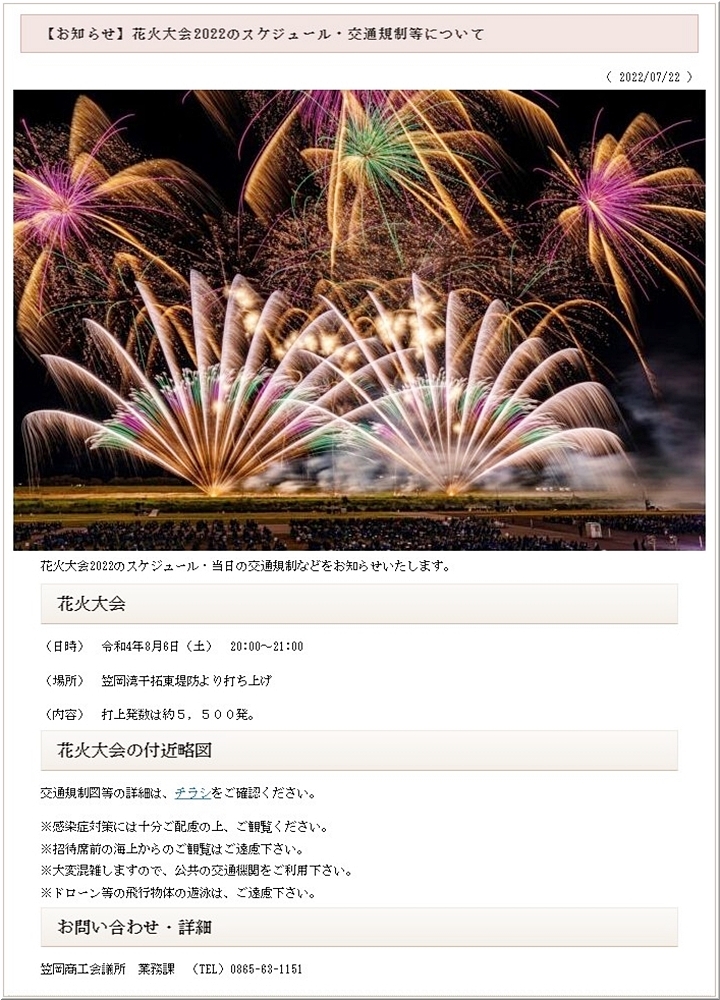 これに伴い、『希望をつなぐ小規模分散リ・スタート花火大会』と長ったらしい呼称で、市内11ヶ所で小規模分散(5分程度の打ち上げ)で開催されました。