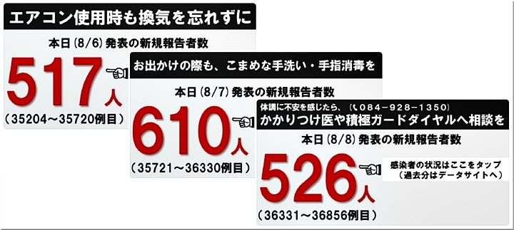ですから、お盆明けにコロナ感染者の急増は、ある程度見込まれまして、当然と言えば当然なのかも分かりません。とは言いましても、前日対比で倍増の福山市。う〜ん、何をどぅしてイィものやら(^-^;
