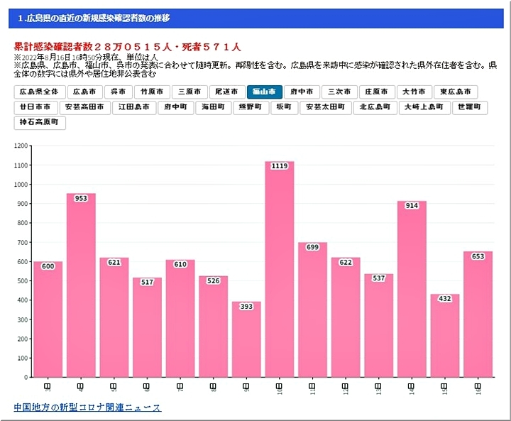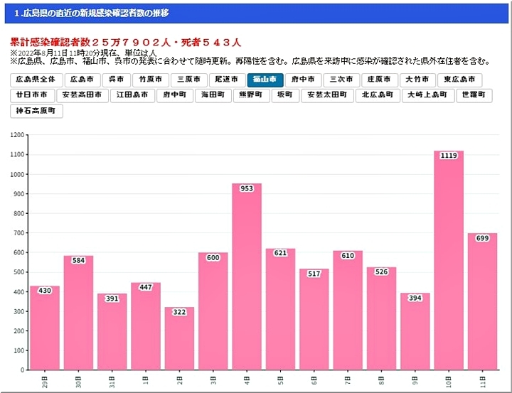 ◆広島県福山市で過去最多の1,428人感染 18日新型コロナ