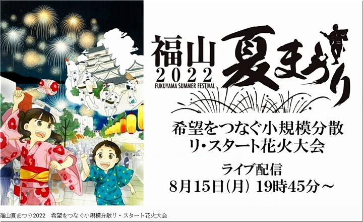今夜は「福山夏まつり2022」の最終日で、本来なら、フィナーレを飾ります花火大会は芦田川で開催されますけど、今回もまた中止です。