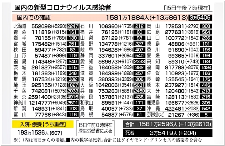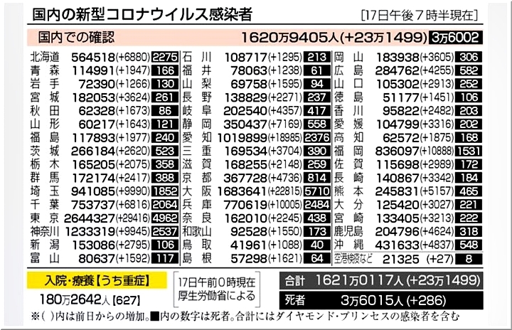 ◆広島県で2,876人感染11人死亡 16日新型コロナ