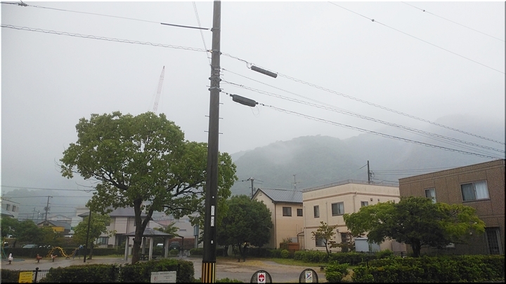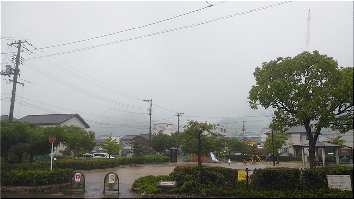 挿入の画像は、豪雨状態の一番激しい時に、我が家周辺の景観を撮りましたものなんです。