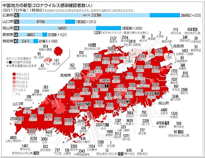 ・広島県最多8,775人感染 コロナ病床7割埋まる