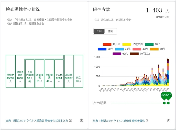・急激な増加について、県は盆休み中に人の流れや接触機会が増えたのを要因の一つに挙げる。休診していた医療機関が盆明け後に再開し、検査が集中した可能性も指摘する。