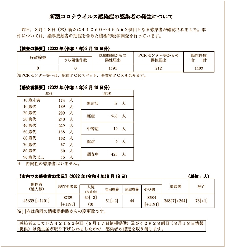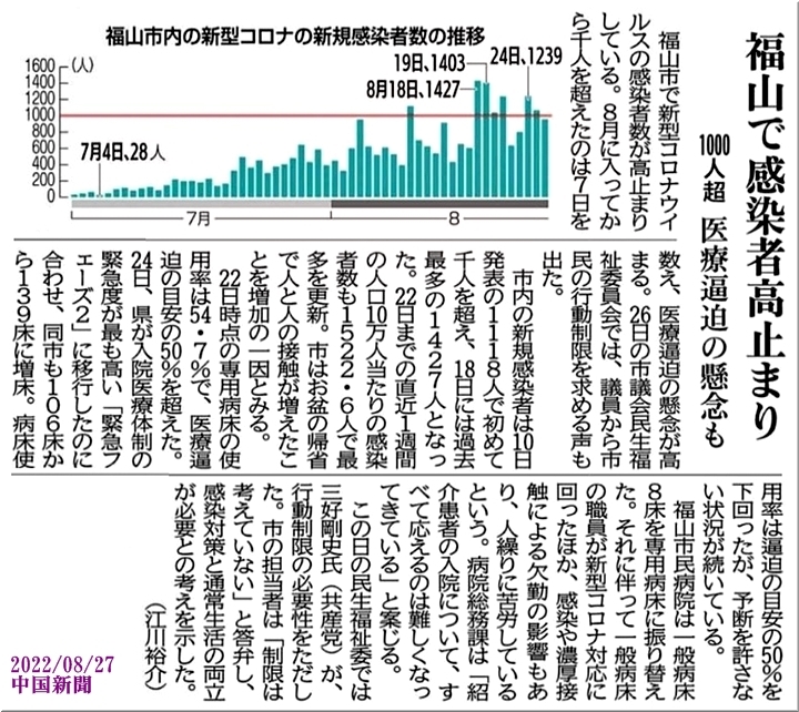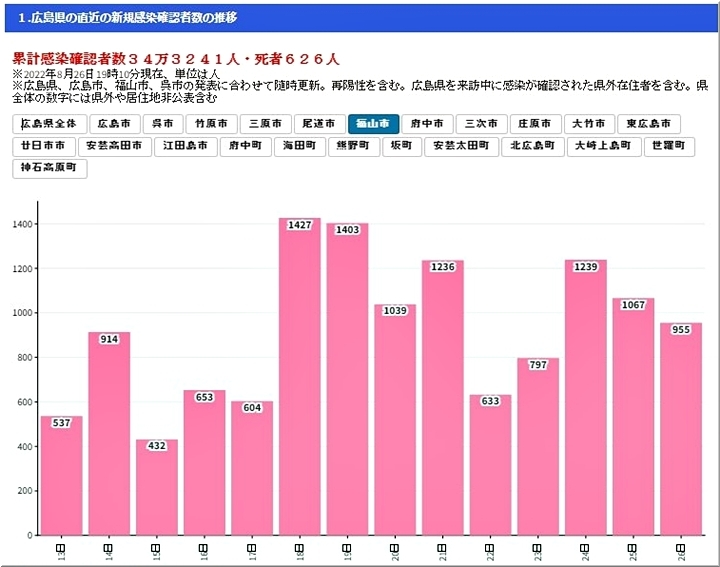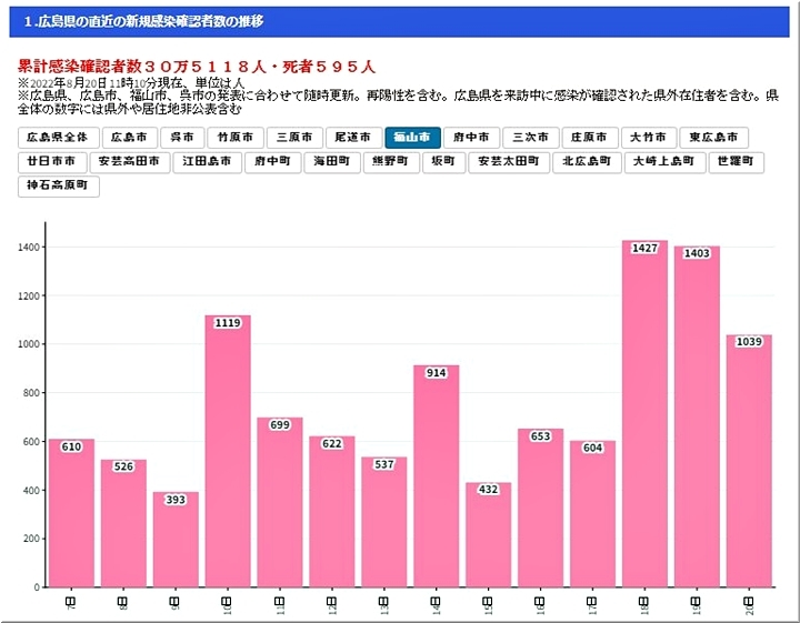 福山市の発表では、本日も1,403人のコロナ感染者の発生とか…