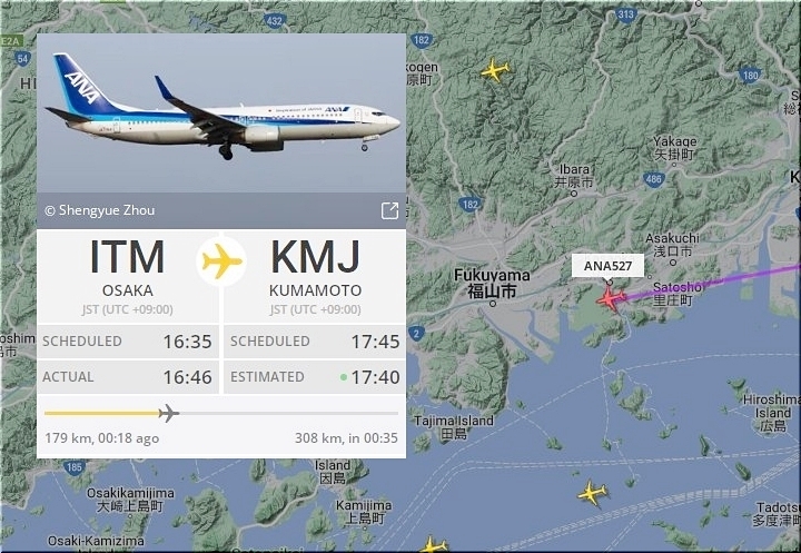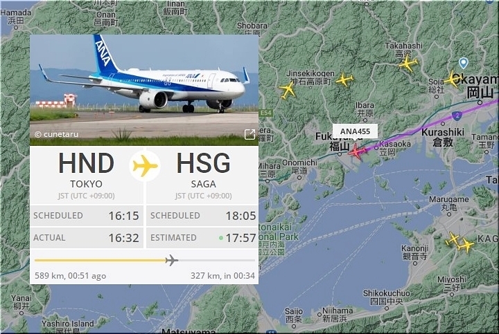 最近は、大変便利になりまして、『flightradar24』と言うWEBサイトがありまして、ここにアクセスしますと、リアルタイムで航空会社・離陸地・着陸地・飛行ルートが分かります。