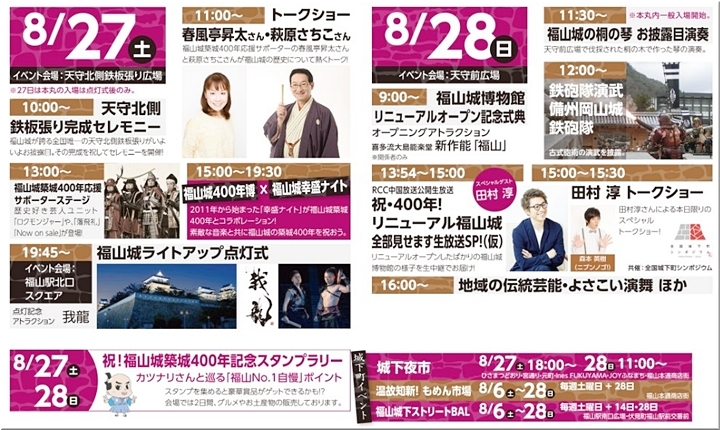 8/27〜8/28の2日間、「福山城400年博オープニングイベント」の開催ですネ(^.-)☆
