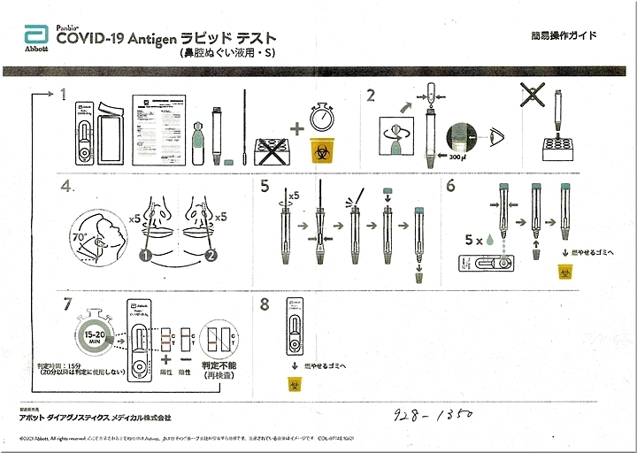 ふん、ふん、簡単に検査結果が分かります新型コロナの陰性・陽性の簡易検査ですネ(^.-)☆