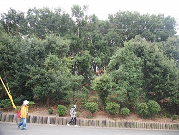 高松長尾大内線(県道10号線)さぬき東街道≠跨ぎます歩道橋を進んで行きますと、前方の正面方向に、こんもりとした山が…ここが「富田茶臼山古墳」のようであります(^-^)//"