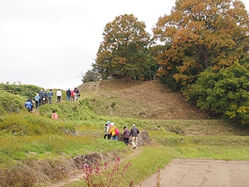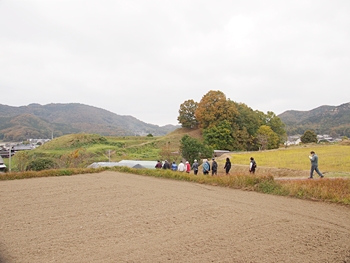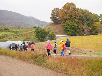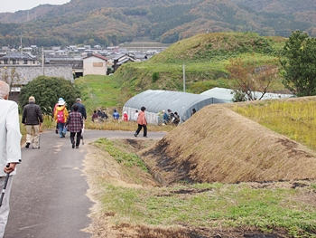 道の駅「みろく」≠ノ到着しますと、ここでバスから下車。歩いて「富田茶臼山古墳」へと向かいます。