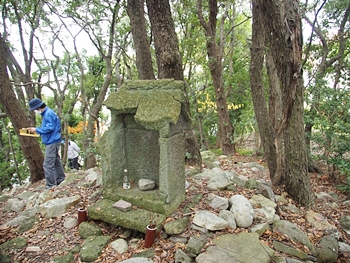 なお、後円部登り口横に、弥勒菩薩の石仏が祀られています(西岡の弥勒菩薩)。かって古墳そばの池から出土し、のち現在地に移し祀られたそうです。鎌倉時代後期から南北朝時代の間の作と推定されています。さぬき市指定有形文化財(彫刻)に指定されています。