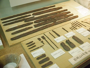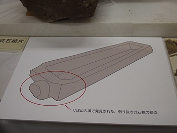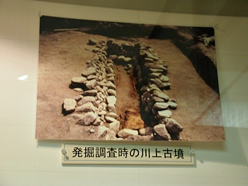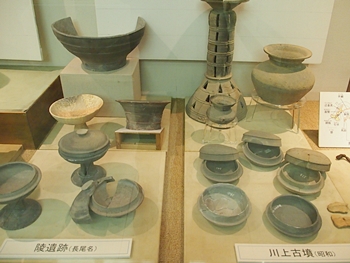 古墳の葺石のように墳丘斜面に石材を使用しているもの(尾崎西遺跡、陵遺跡)などがあり、次の古墳時代の古墳へと発展していく要素を既に弥生墓の中に見ることができます。