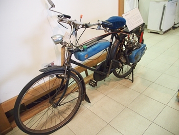 昭和27年頃より普通の自転車にガソリンタンクのついた原動機自転車が流行した。