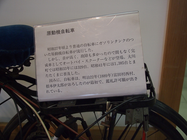 しかし、背が高く、故障も多かったので間もなく完成車としてオートバイ・スクーターなどが登場。大川町では昭和33年には329台、昭和41年には1,358台とまたたくまに普及した。