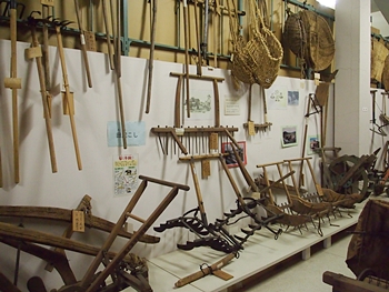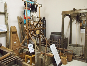 潅漑用の農具では古くは「淀車」「踏車」「はね釣瓶」などが使用された。淀車は深井戸や湧水池などから水を汲み上げるときに利用したものであり、別名「数珠車」とも呼ばれた。直径1.4m、幅0.9mの木製の車を2人で足を踏み付けて回し、車にかかった鎖状につながった十数個の汲桶が井戸の水を汲み上げて、桶に流し込み潅漑する。この淀車は明治初期では大型の揚水用具であり、一般には桶を1つはね木に付けて、2人で汲み上げた「ハネ釣瓶」が使われた。