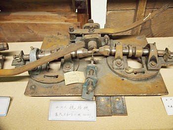 でも、中には、全く分からないモノも…この古めかしい小川式挽場機 裏穴貝釦(ボタン)型付機≠ノ眼が止まってしまいましたけど、これは、何なんでしょうねぇ〜