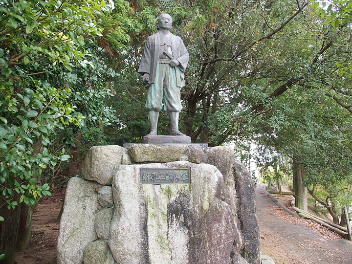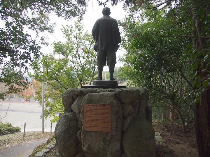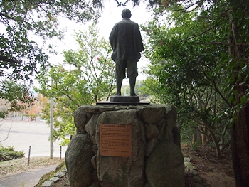 展望台に向かっておりますと、どなたかの銅像が…台座には軒原庄蔵氏像≠ニ刻まれています。ふ〜ん、水利土木功労者の軒原庄蔵《anですネ(^.-)☆
