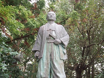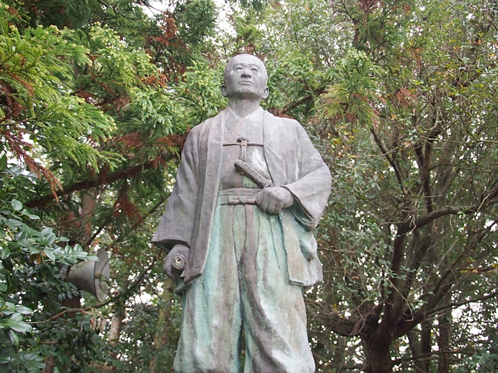 軒原庄蔵氏像≠ワで下りて来まして、「んっ!?…」と眼が止まりましたのが、像の裏側の説明板。像を拝見しています時には気付きませんでしたけど、うん、うん、裏側に説明板がありましたネ(^-^)
