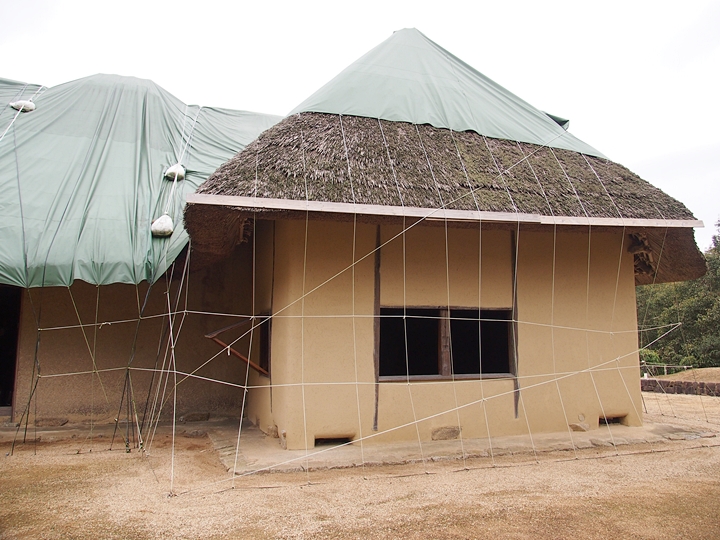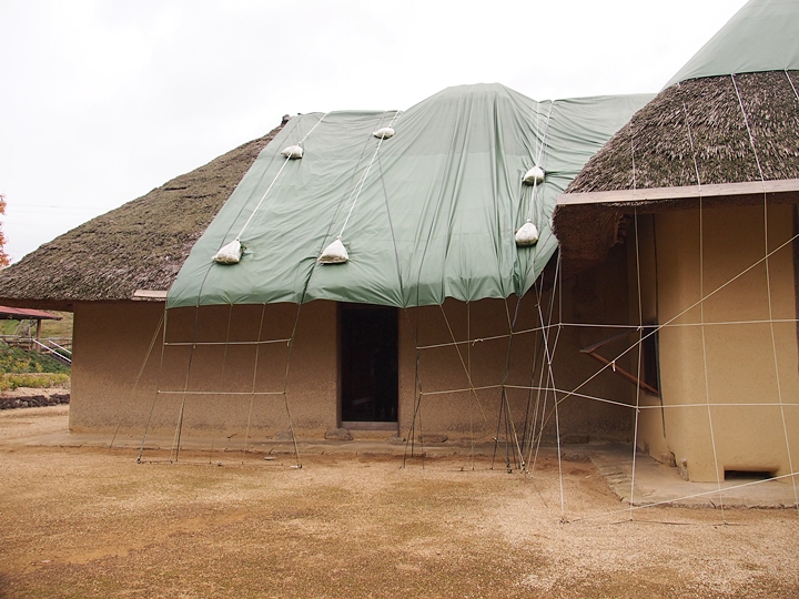 旧恵利家住宅は、17世紀にさかのぼる県下最古の農家住宅で、周囲を瓦葺きの庇とせず軒先まで茅で葺き降ろす形式が建築年代の古さを物語っている。