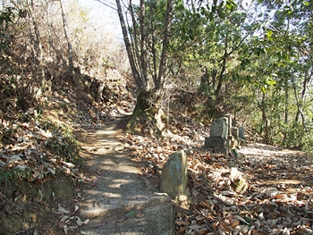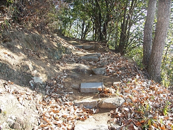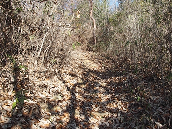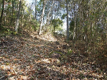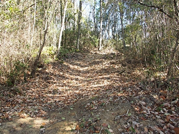 古墳までの上り道は、ほぼ真っすぐですから、のんびりと進行です。落ち葉も結構有りますから、足が滑らないようにユックリと(^-^)