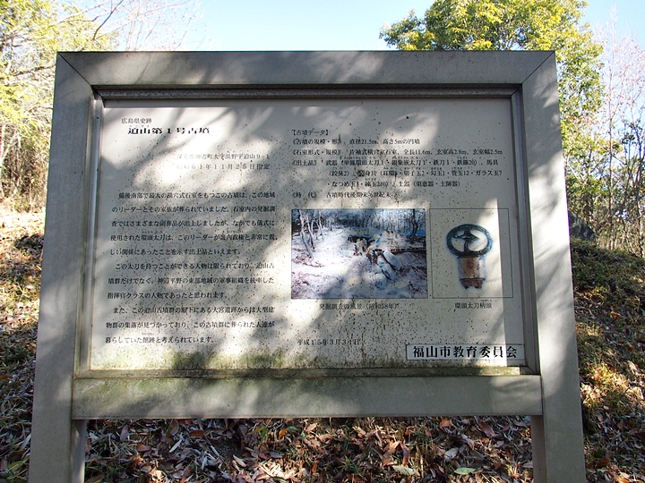 黙々と上がっておりましたら、前方に古墳の説明板が見えて来ましたネ。ほどなく、迫山第一号古墳≠ノ到着となりました。