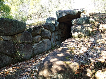 《石室形式・規模》片袖式横穴室石室、全長11.6m、玄室高2.8m、玄室幅2.5m