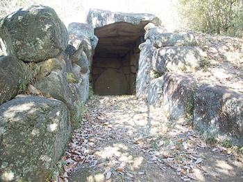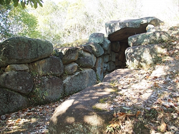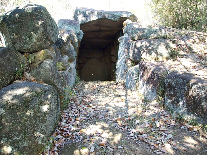 被葬者は、壬申の乱で大海人皇子(後の天武天皇)に味方して功績のあった吉備大宰石川王(キビノオオミコトモチイシカワノオオキミ)ではないかといわれており、当地と大和朝廷との深い関わりが推測されています。石川王は鬼ノ城の主とも言われており、日本書紀によると、679年に没した際に天武帝より諸王二位を贈られています。