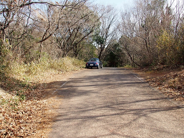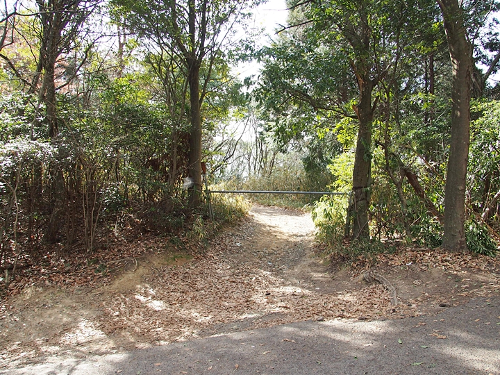 展望台から少し進んで行きますと、車が2〜3台なら駐車出来るくらいの路側帯がありますので、ここかな…と見廻しますと、進入路を阻む感じでポールが…う〜ん、きっと、ここから地王山頂きに向かいますのでしょうネ(^-^)
