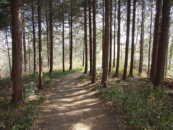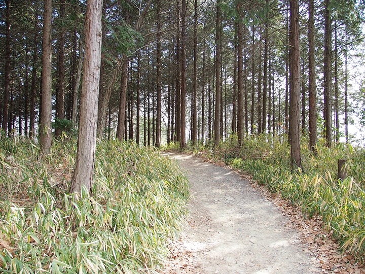 路側帯に駐車し、ポールを潜り進んで行きますと、スラッと延びた杉林が…登山口は、大変綺麗に整備されておりました。ハングライダーを楽しむ方々が定期的に手入れしておられますのかも…