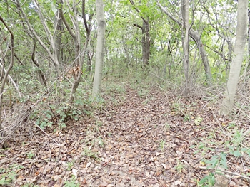 どこで間違えましたのでしょうねぇ〜ヤッて来ました道をそのまま引き返し、先ほどの三叉路合流地点まで戻って来ますと、今度は右側(丘の麓廻り)の道を選択です(^-^)