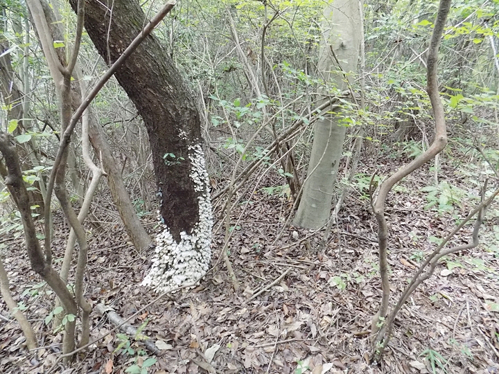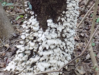 右に進んで行きますと、樹木の根元付近にキノコ群が…白くてキレイでしたからパチリです(^-^)//"