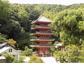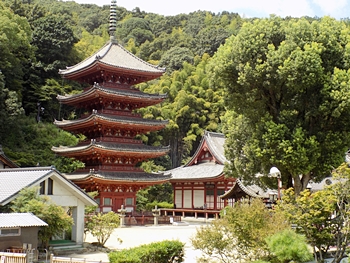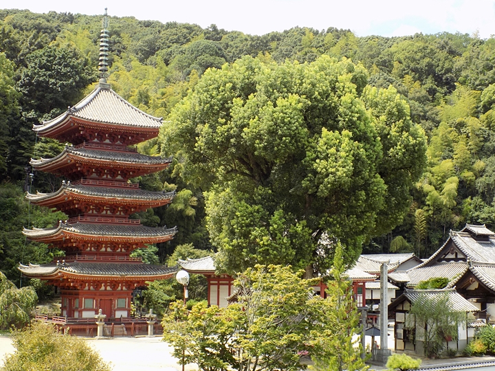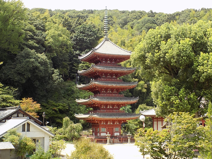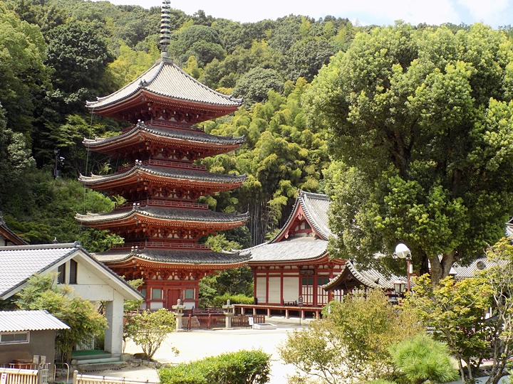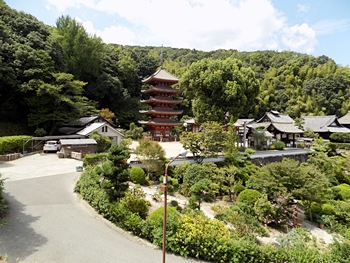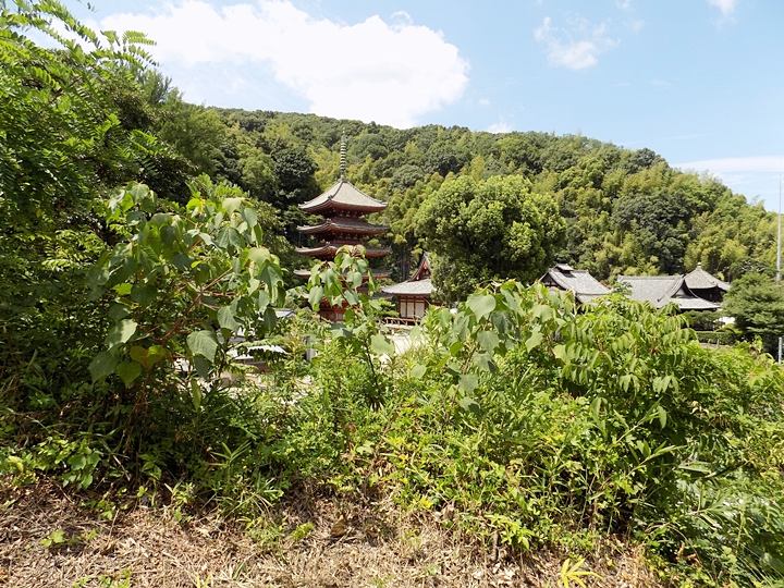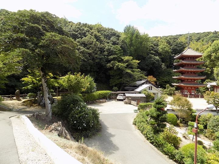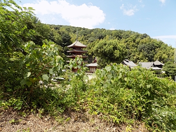 陸軍墓地への進入路入口辺りから見渡します明王院…本堂は樹木に遮られ一部隠れますけど、五重塔が大変キレイです(^_^)v