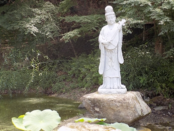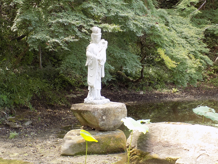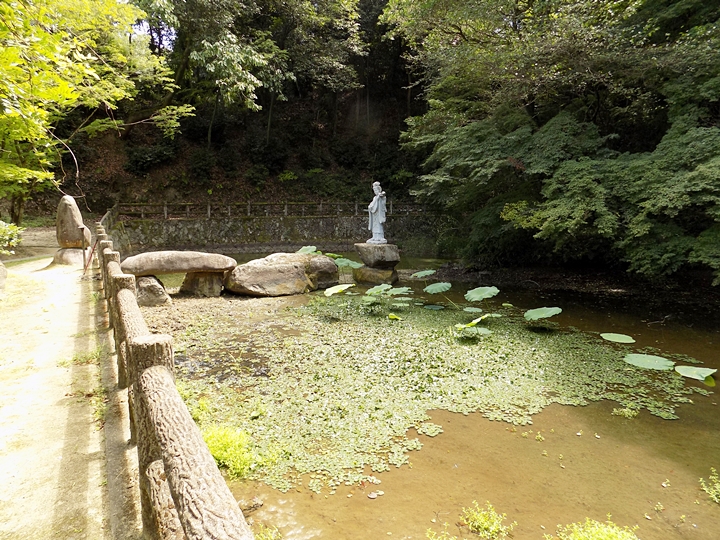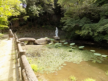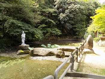弁財天像が佇む池(弁天池)の畔には、「心経筆塚」が…焦点の定まりません眼でボンヤリと池を見つめておりましたGONsanですけど、心が落ち着きますイィ場所でありました(^-^)//"
