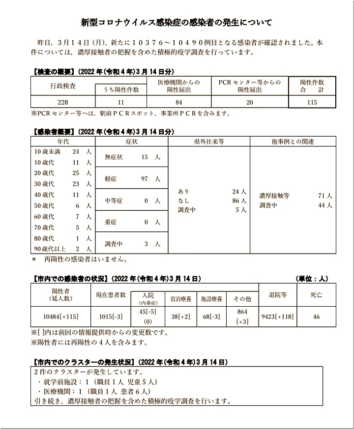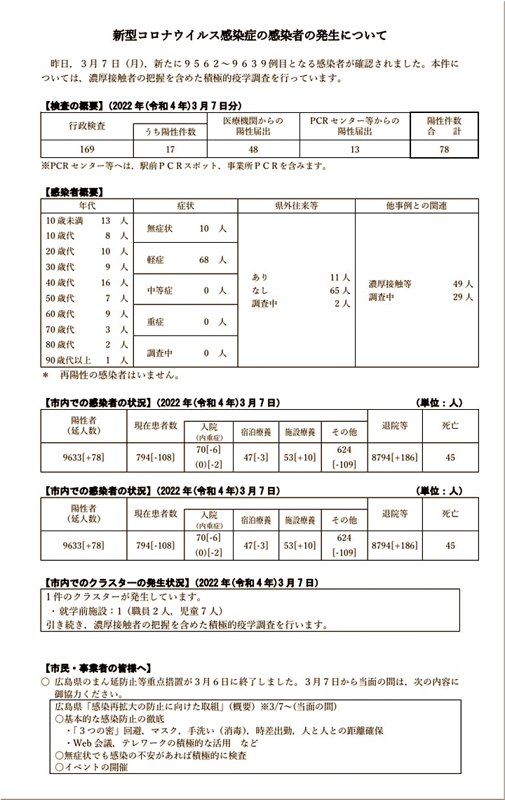 昨日発表されました福山市のコロナ感染者は、73名でした。