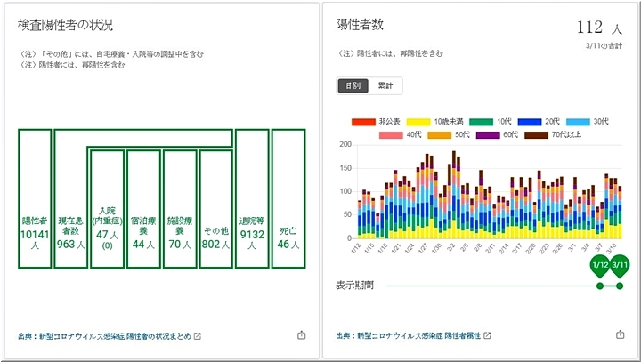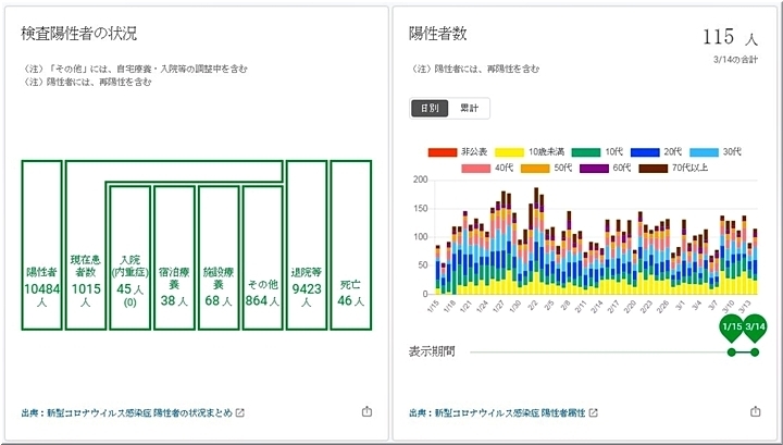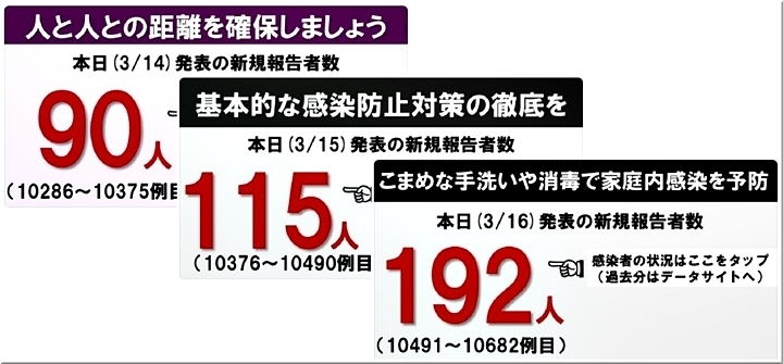 一週間前を見てみますと、2/28--73人・3/1--83人ですから、若干減少してはおりますネ。このまま、今週は減少推移に向かえば宜しいのですけど…