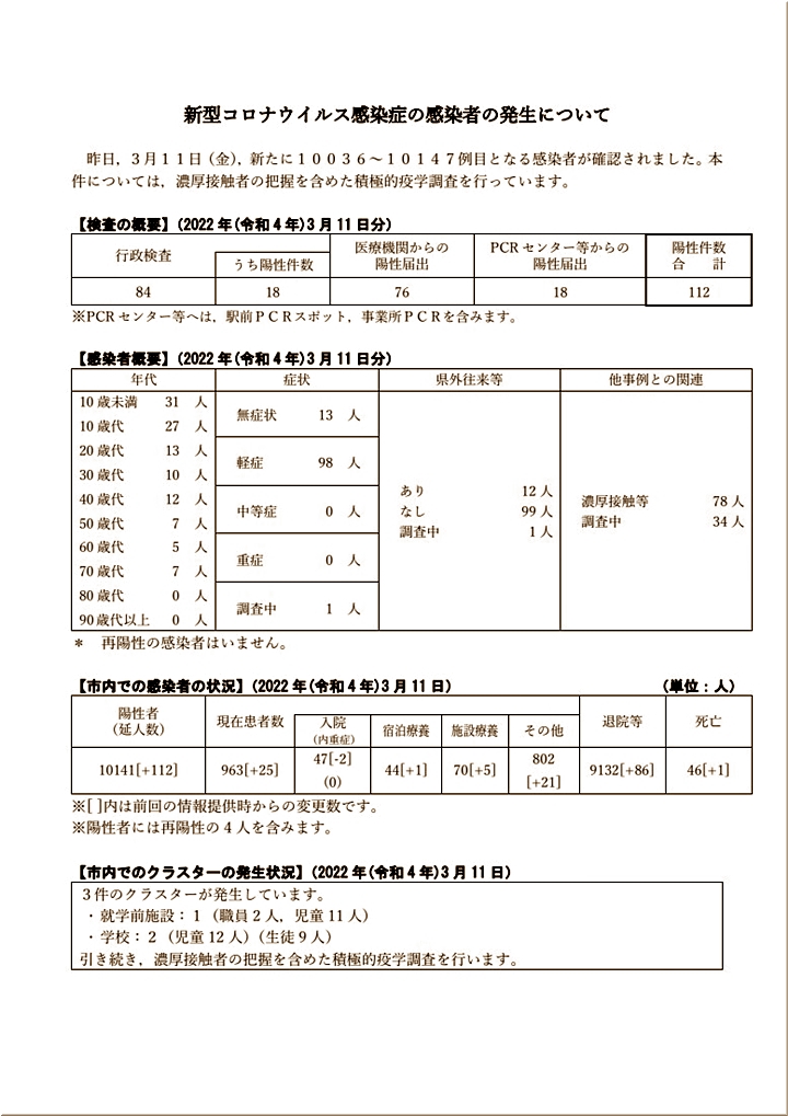 それと、小児の皆様へのワクチン接種ですけど、接種券が発送されましたようであります。