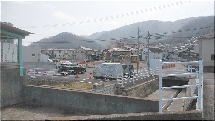待機中にJA福山水呑支店跡地に眼を向けますと、何やら工事が始まっておりましたネ。ふ〜ん、建物解体後、暫く更地で放ってありましたけど、基礎工事がスタートです。