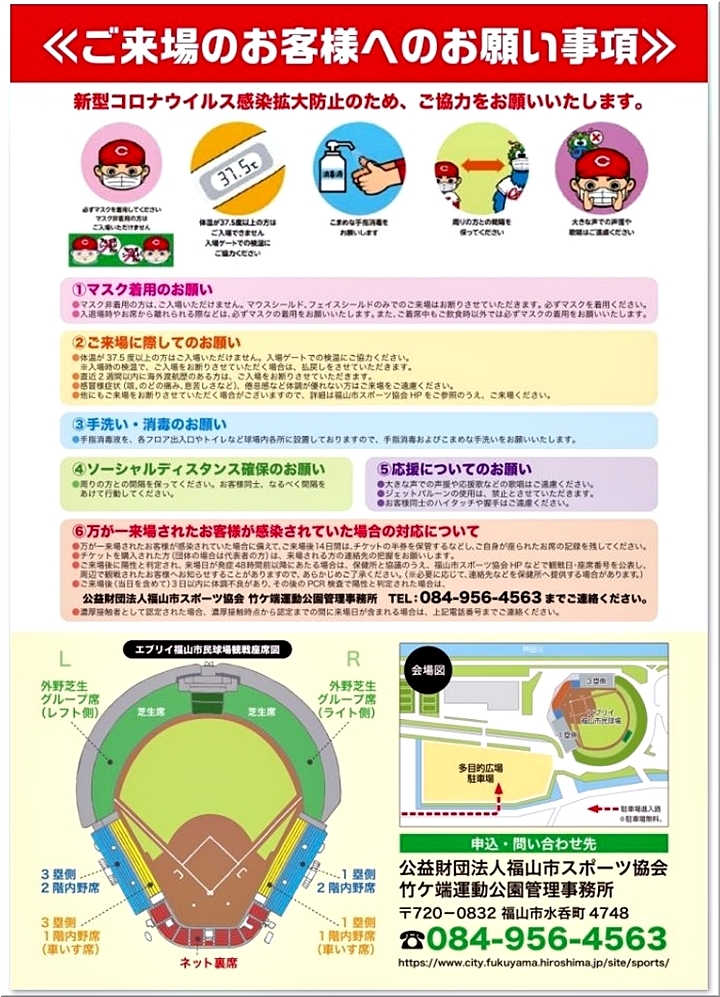 「広島県におけるイベントの開催条件について」に基づき、感染防止対策を徹底したうえで実施します。