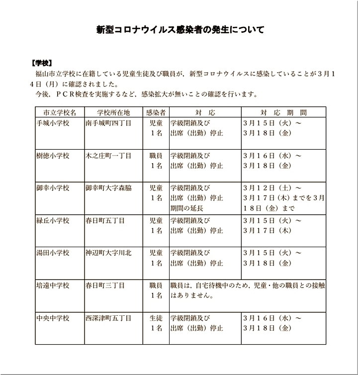 福山市のコロナ感染者発生…止まりませんねぇ(^-^;