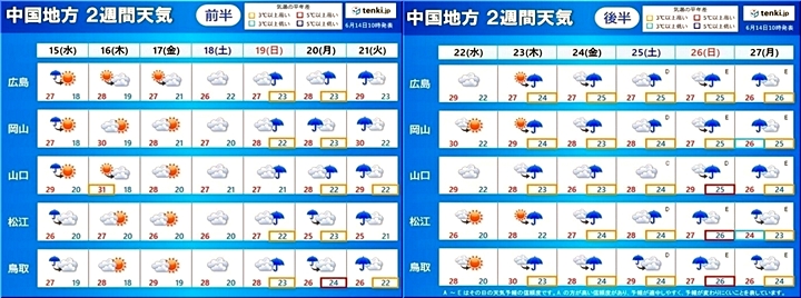 --- 6/14(火) 12:05配信 tenki.jp ---