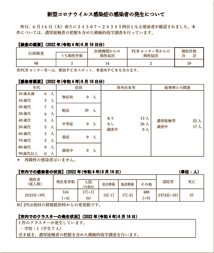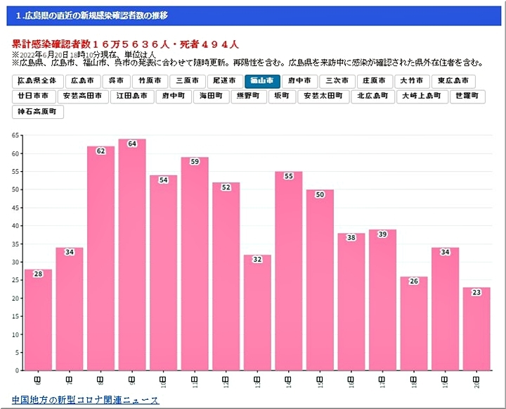 福山市の本日の発表によりますと、福山市の新たな新型コロナ感染者は、39名でありました。