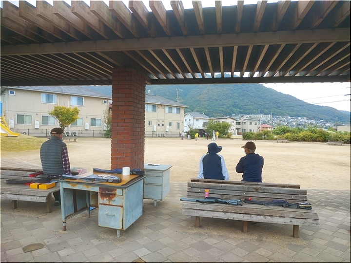 コンビニに立ち寄りタバコを求めてから中村三新田公園に到着しますと、今にも降雨がありそうな空模様にも拘わらず、意外にも、既に8名ばかりお集まりでありました。