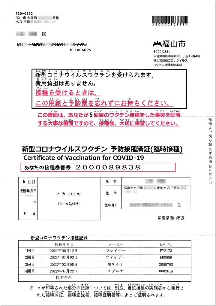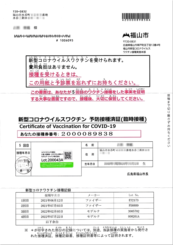 本日、午前中に、「新型コロナワクチン接種(オミクロン株対応)のお知らせ」が到着で、早速、ワクチン接種の予約を済ませましたGONsanです(^.-)☆